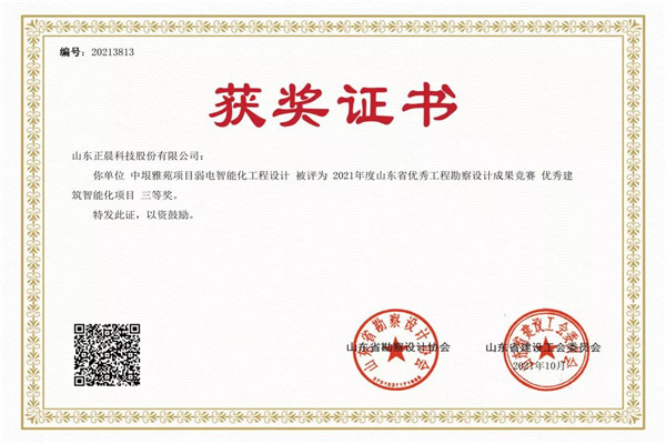 近日,山东省勘察设计协会、山东省建设工会公布的《2021年度山东省优秀工程勘察设计成果竞赛结果的通知》中,QYHTY.COM股份设计的中垠雅苑弱电智能化项目获评优秀建筑智能化项目三等奖,有力的助推了城市勘察设计水平的提升及城市建筑品质的优化。